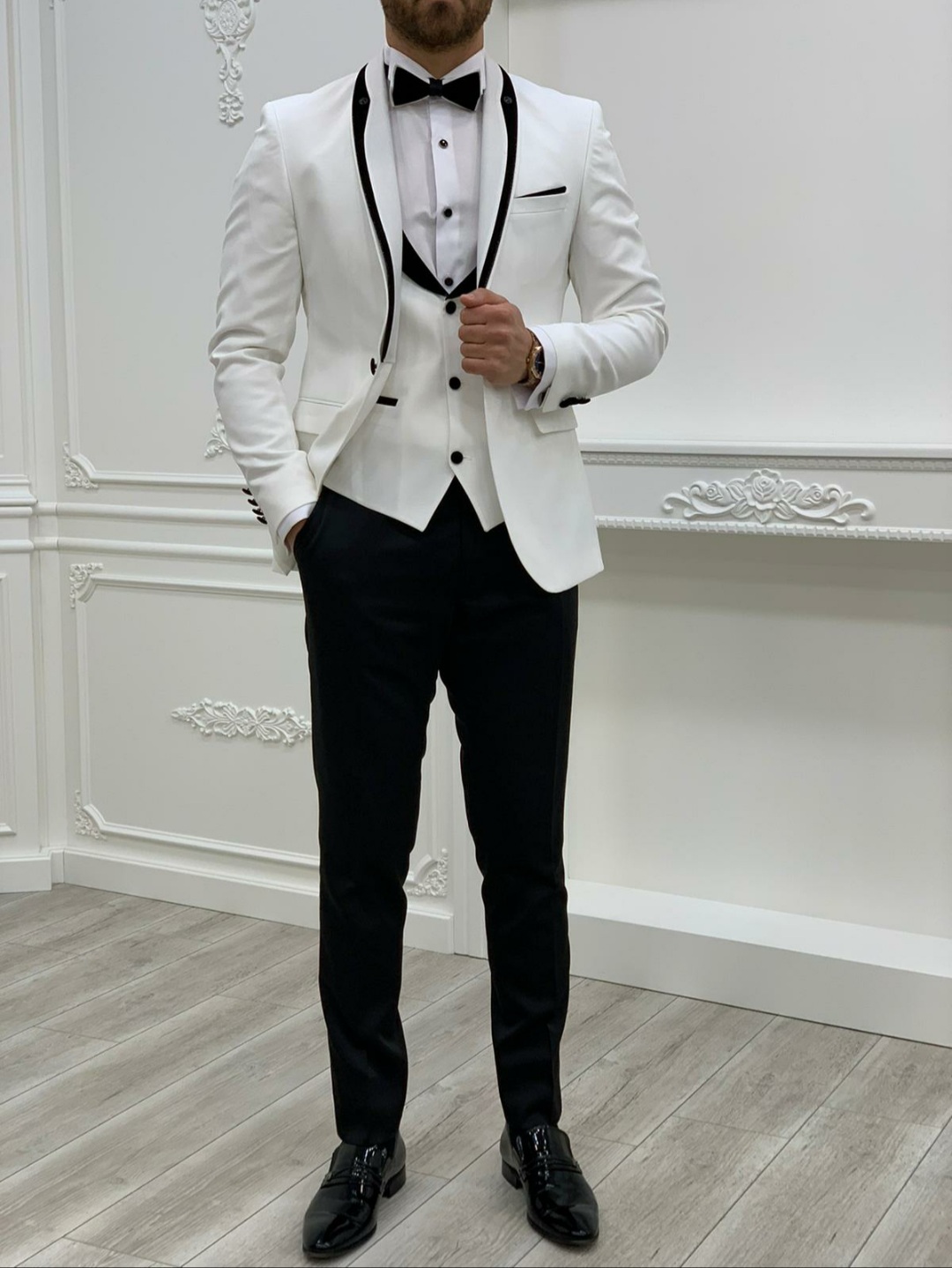Color: White Slim Fit – italian Cut 65% Poly 35%Viscon